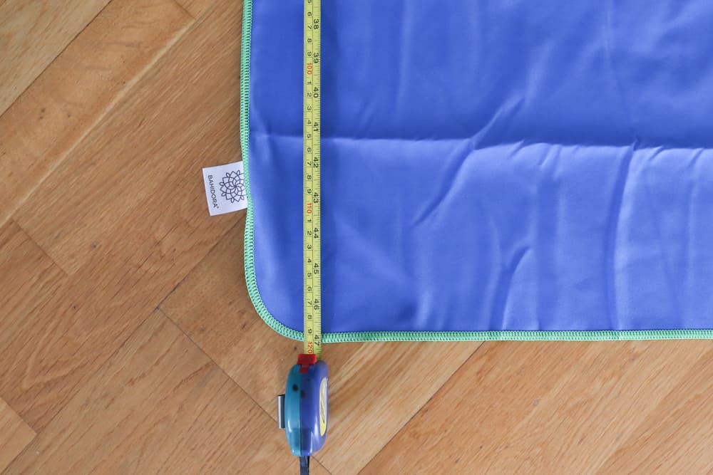 Ich habe schon so einige Reisehandtücher in den Händen gehalten. Die meisten sind einfarbig und von Haus aus eher schlicht. Als ich das Bahidora Reisehandtuch auspacke, habe ich den Eindruck, dass es etwas höherwertig ist. Allein die verschiedenen Farben mit den abgesetzten Nähten machen einen ansprechenden Eindruck und leuchten förmlich.