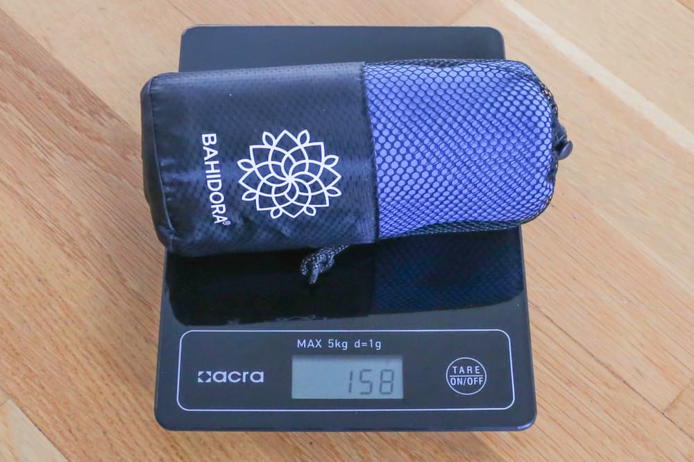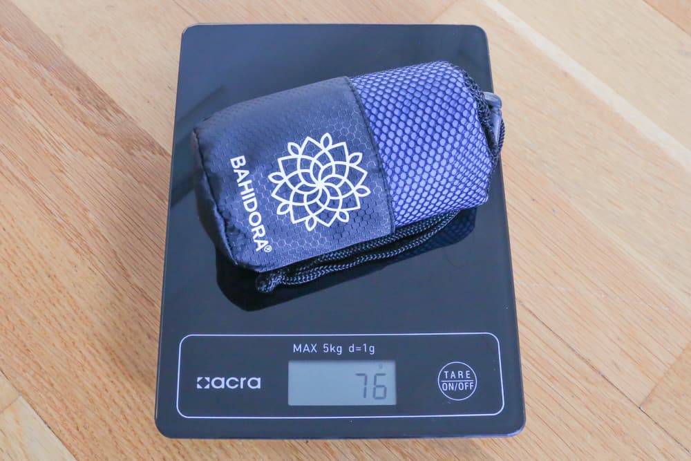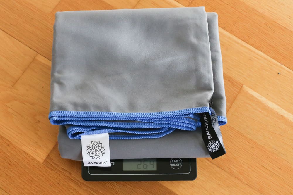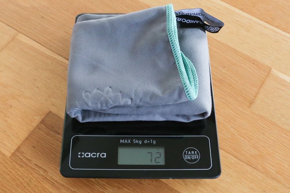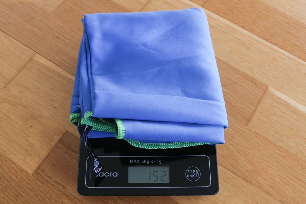 Zunächst einmal ist das Material zu nennen: Mikrofaser. Reisehandtücher bestehen in der Regel aus diesem Stoff und trocknen daher deutlich schneller als herkömmliche Handtücher. Sie sind zudem leichtgewichtiger als ihre Oldschool-Kollegen aus dem Badezimmer. Gewicht ist schließlich wichtig, vor allem, wenn du es auf dem Rücken trägst. Die meisten Rucksackreisenden greifen daher auf Textilien zurück, die eine hohe Funktionalität bei wenig Gewicht haben. Meist gilt: je leichter, desto teurer. Bei Handtüchern ist der Preisunterschied jedoch nicht so heftig.